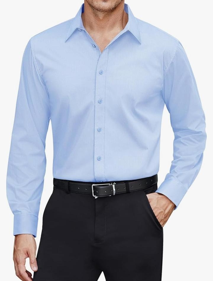 Get our Light Blue Button Down Formal,Long sleeve,Lightweight,regular fit,Button down business shirts with collar and solid shirts. Occasion:Men's casual business solid button shirt suitable for all occasions and seasons like holiday, brithday, beach, Casual, Informal Business, Work, Vacation, Date, Wedding and Travel, Classsic shirts for men will make you feel handsome and elegant when you wear it.
